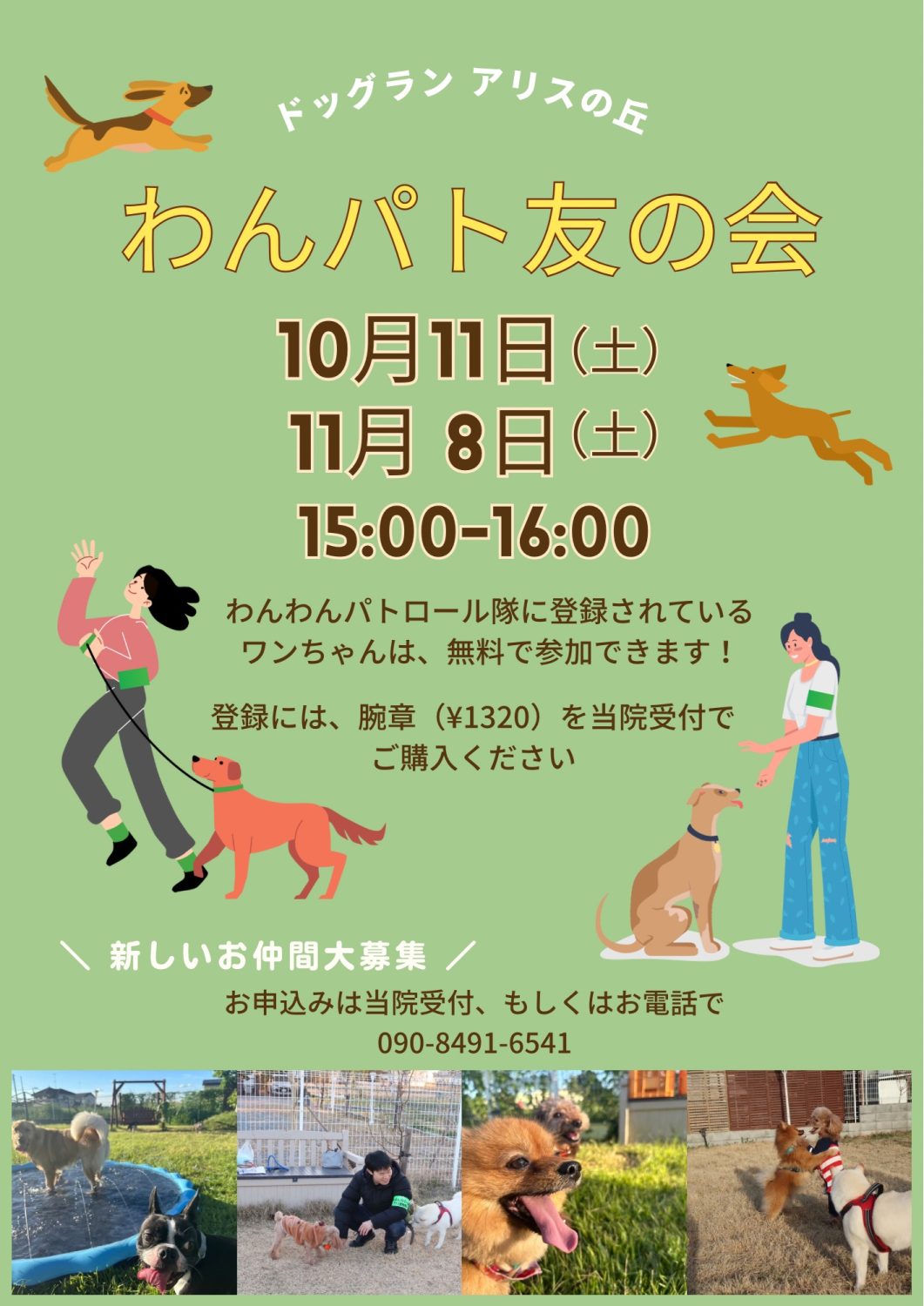 ドッグランアリスの丘では、わんパト友の会を再開いたします。