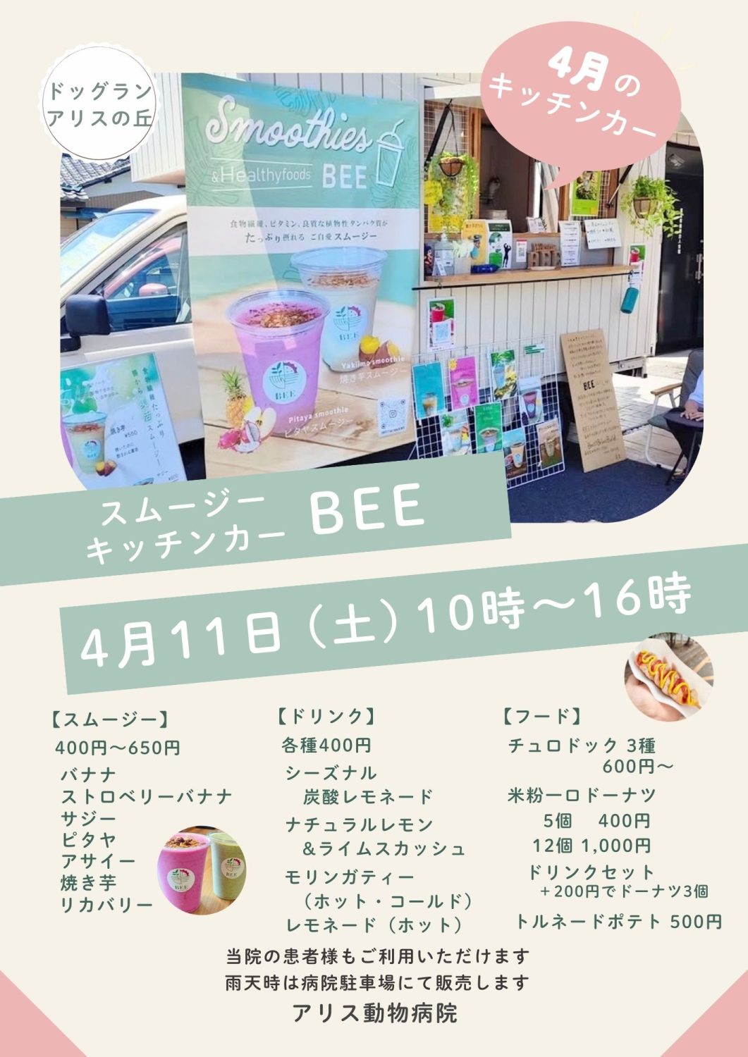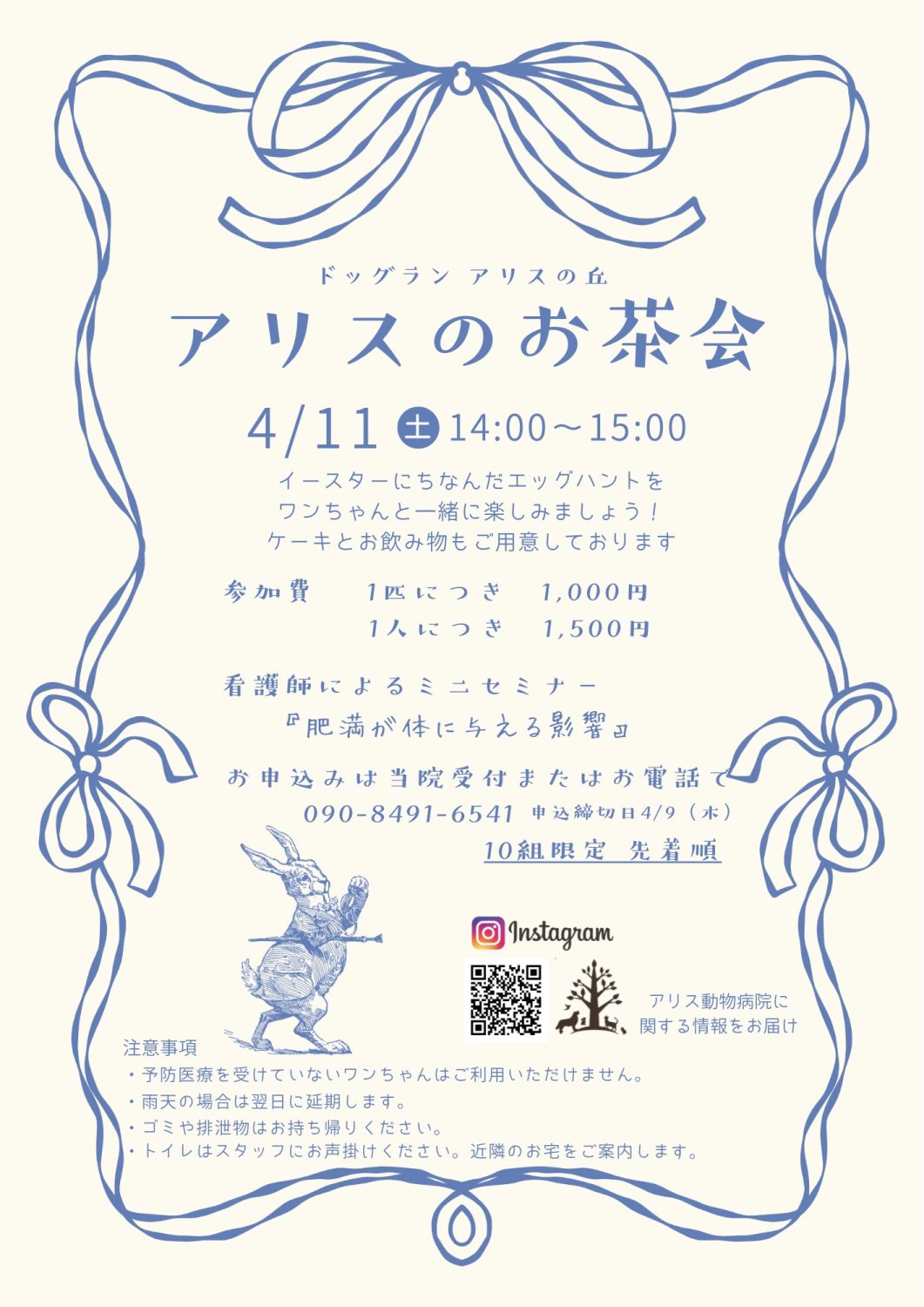 4月のドッグラン アリスの丘では、ワンちゃんと一緒に楽しめる『アリスのお茶会』を開催します。