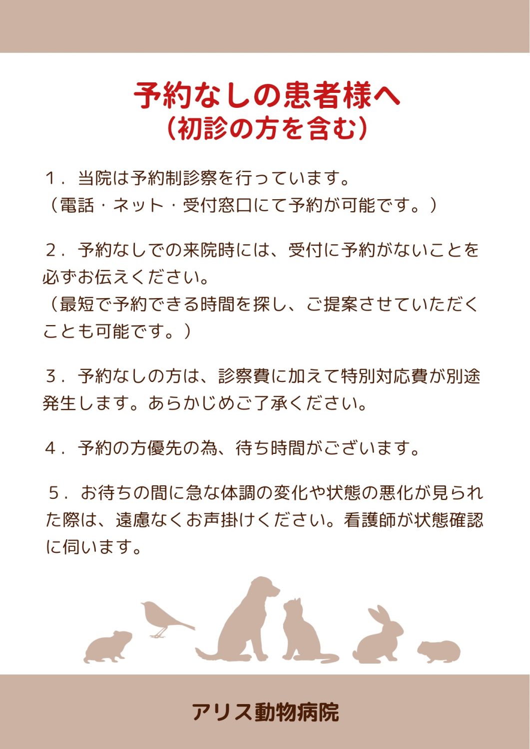 ご予約なしでの来院については、下記をご確認ください。